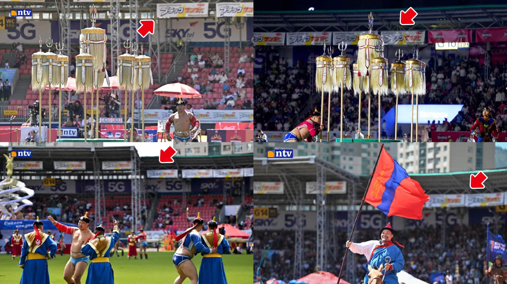 イベント会場内には、ブランド訴求を目的とした看板広告を設置。当日のNaadam特別番組や各種メディアの取材映像にも多数映り込み、現地放送を通じて広範囲な露出を実現しました。