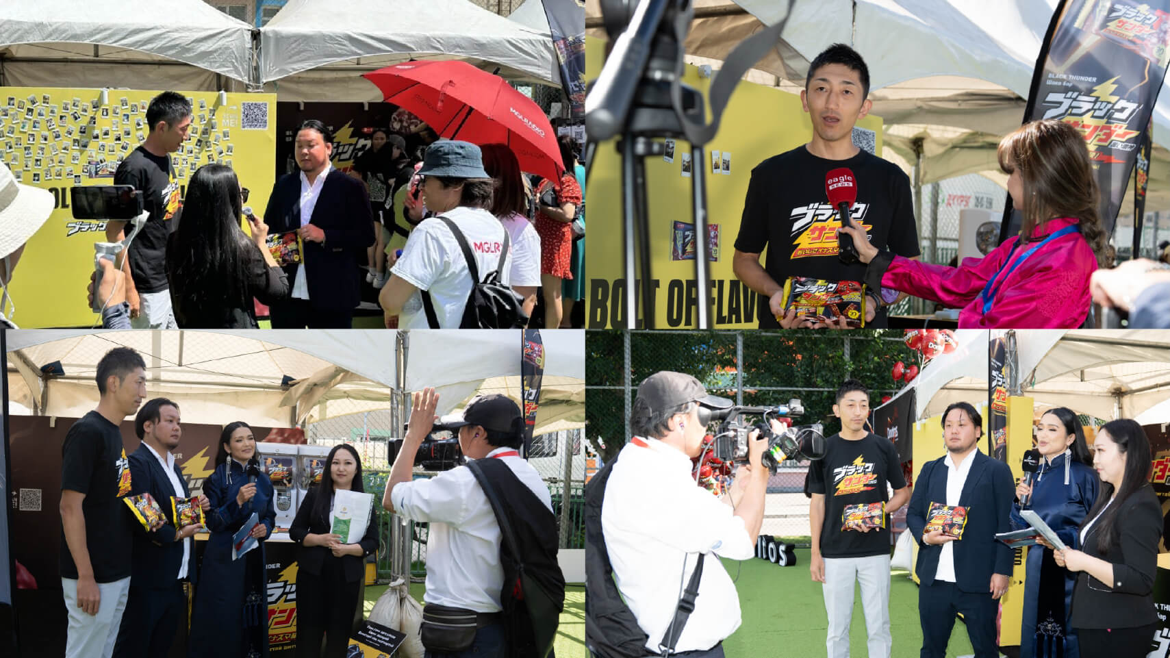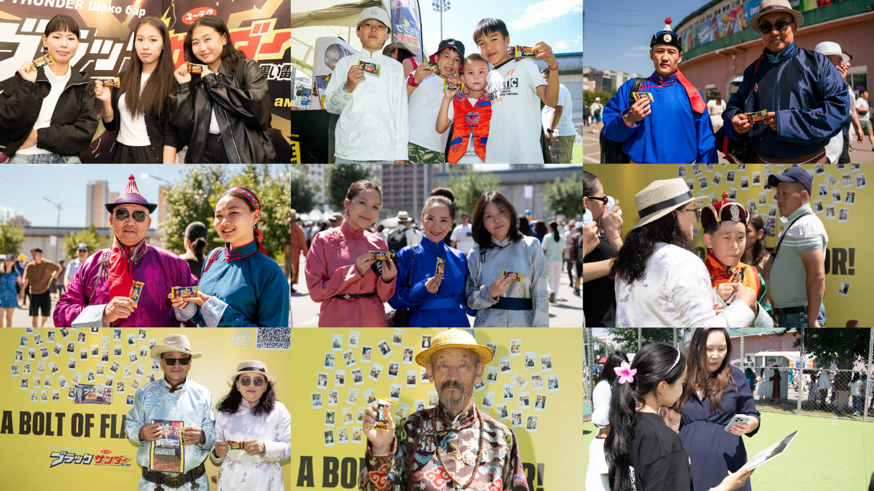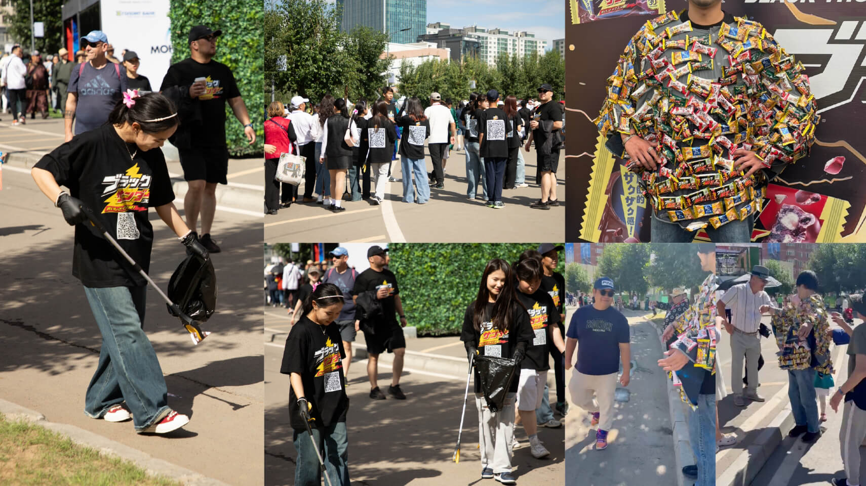 モンゴル現地では、QRコード付きTシャツを着用した「QR掃除隊」が会場周辺を清掃しながら告知を実施。また、全身にブラックサンダーを装着した「ブラックサンダーマン」が登場し、ユニークなスタイルでサンプリングを行うなど、視覚的インパクトと参加型施策によって高い注目を集めました。