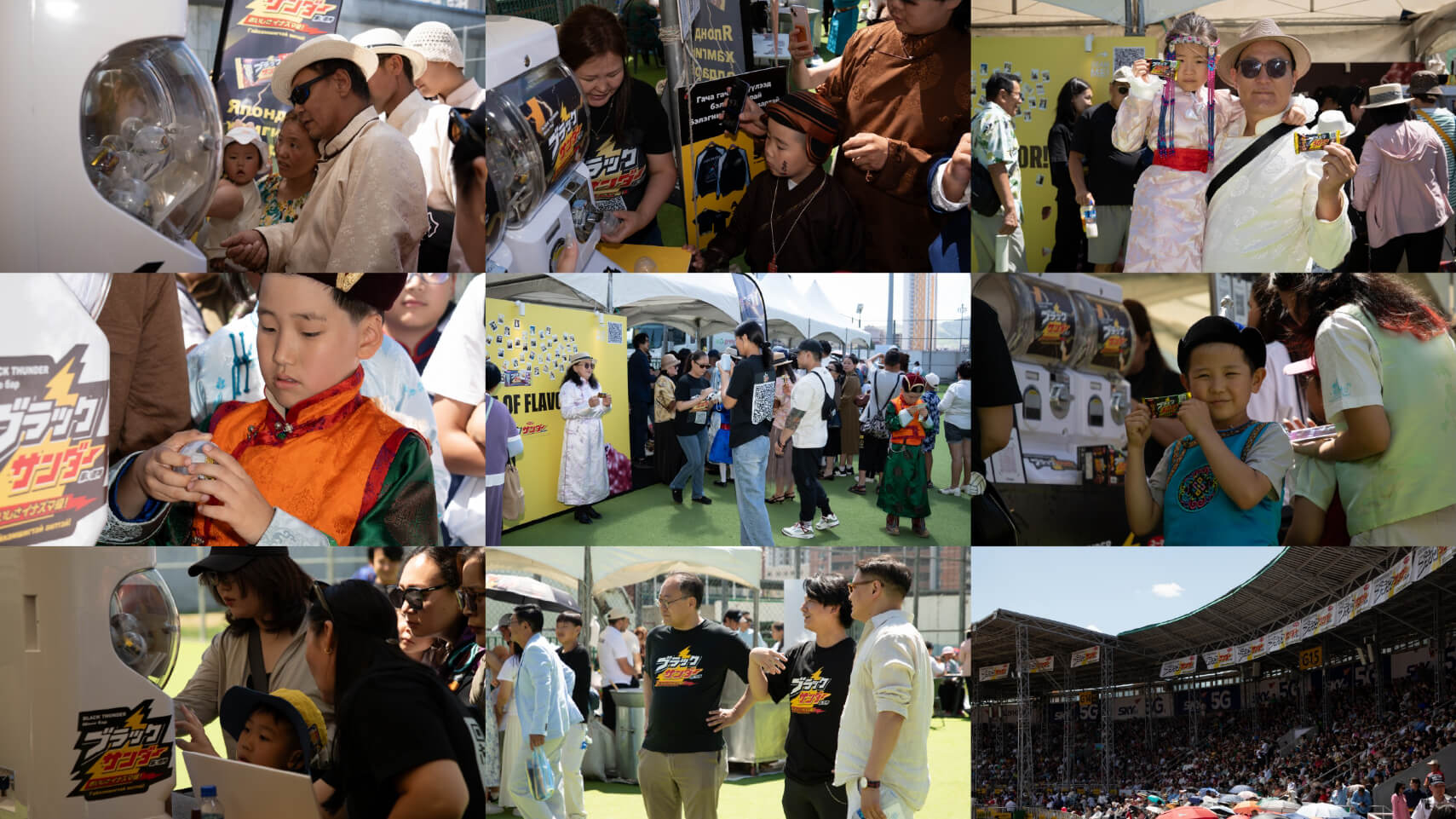 2025年7月11日〜13日、モンゴルの国民行事「Naadam」が開催されたセントラルスタジアムにて、ブラックサンダーのイベントブースを出展。約1万個のサンプリングに加え、ガチャガチャを使った参加型コンテンツやフォトブースを設置し、多くの来場者で賑わいました。